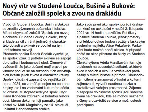 Tak 4. října od 14 hodin – bývalá škola ve Studené Loučce. Přijďte, přijeďte, vraťte se. Společně napíšeme další kapitolu příběhu Studené Loučky.